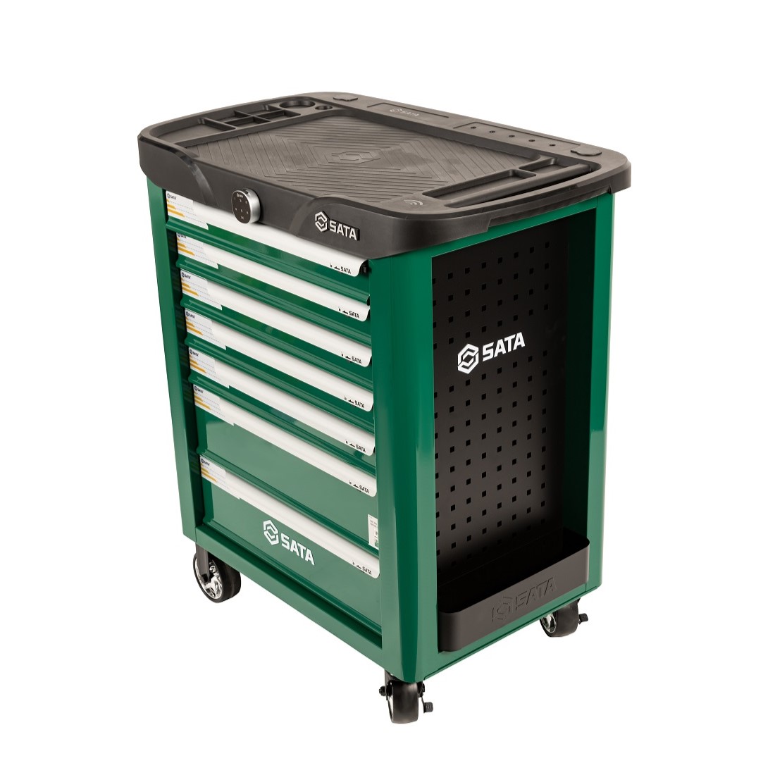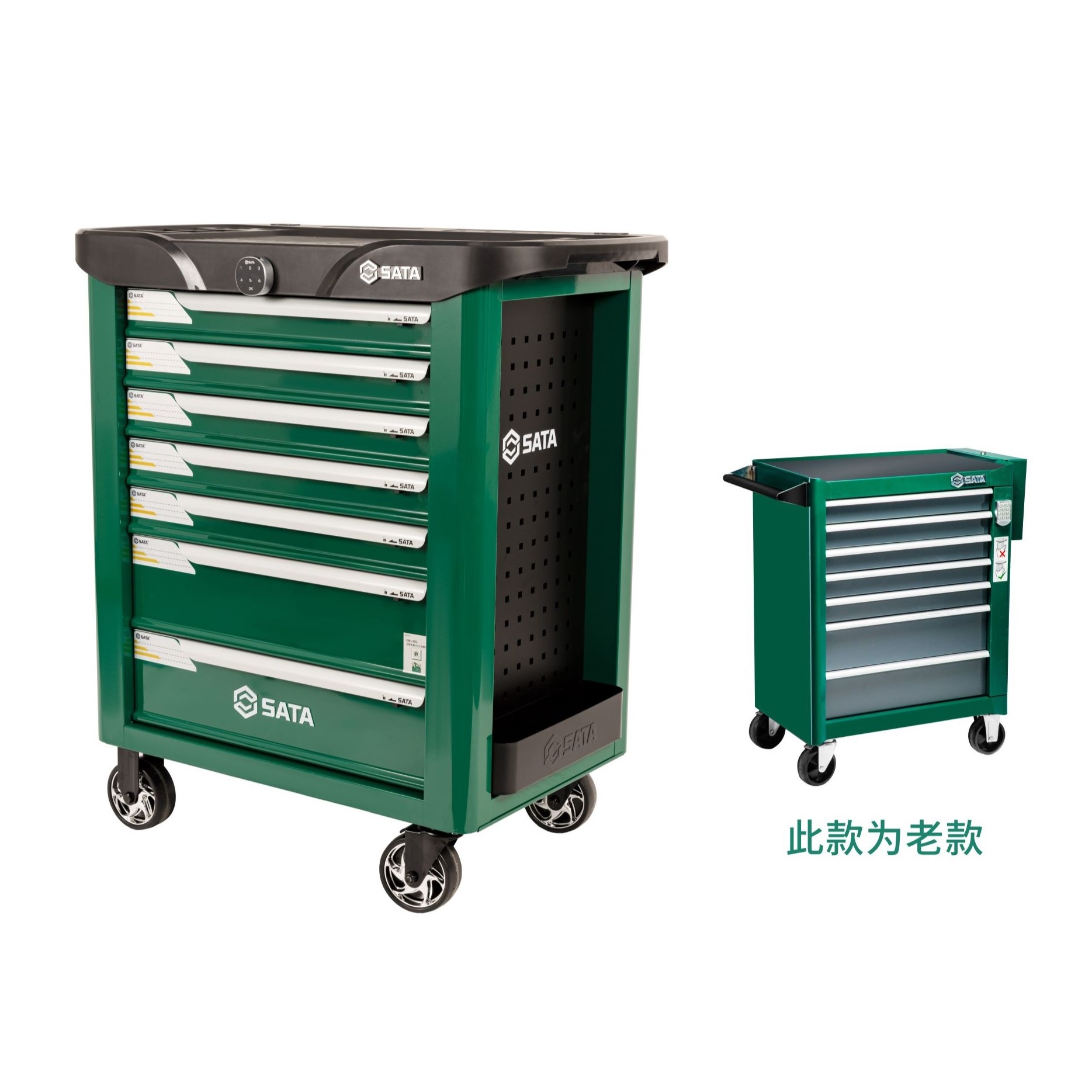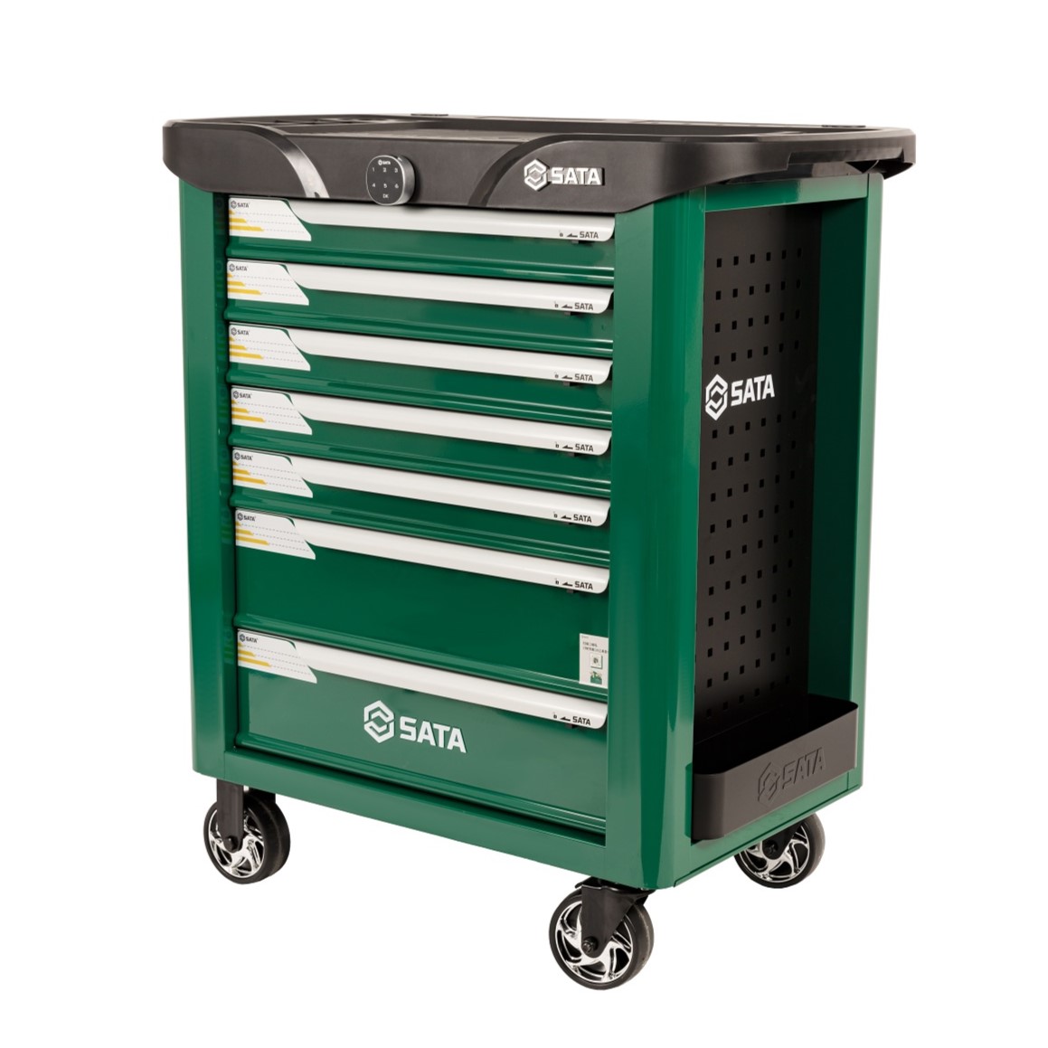 | ◆ | The perforated plates on the left and right sides of the cart body are designed to be used in conjunction with SATA hooks for hanging large tools and items |