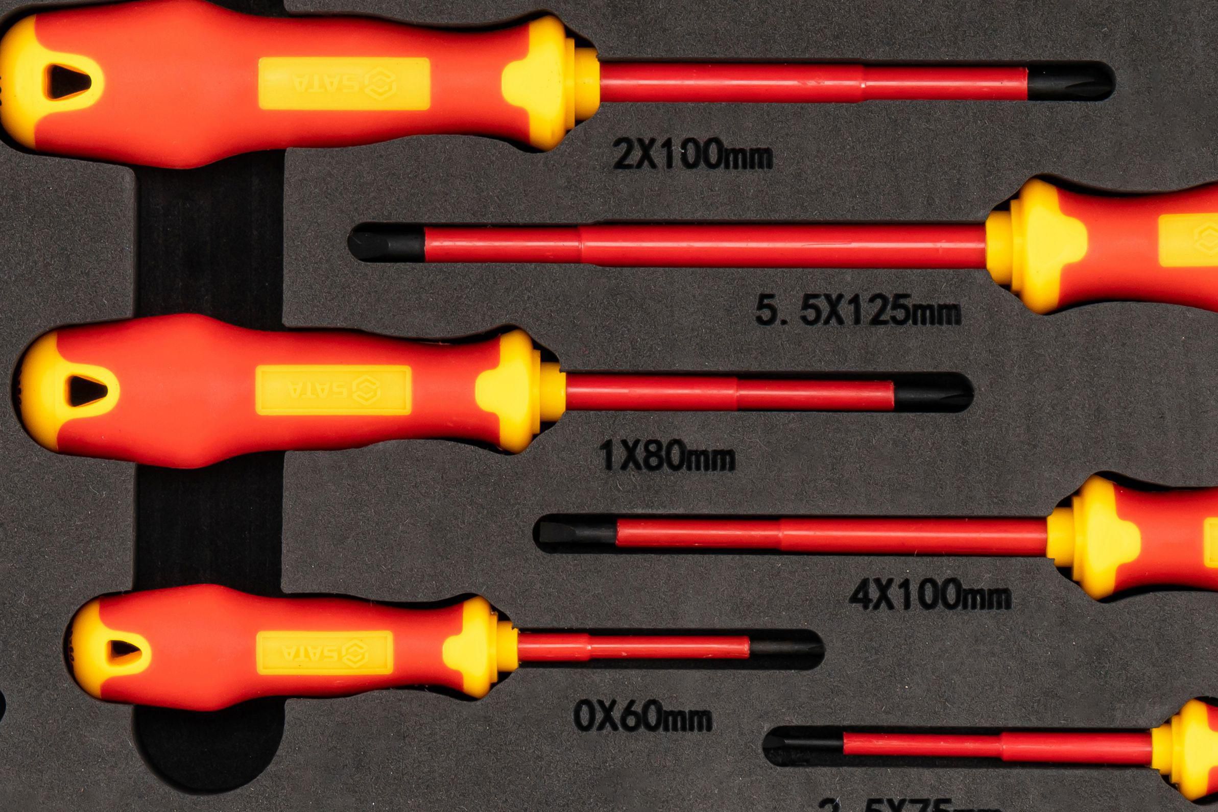 | ◆ | 6-T-Series VDE Insulated Screwdriver Phillips #0 x 60 mm, #1 x 80 mm, #2 x 100 mm Slotted 2.5 x 75 mm, 4.0 x 100 mm, 5.5 x 125 mm |