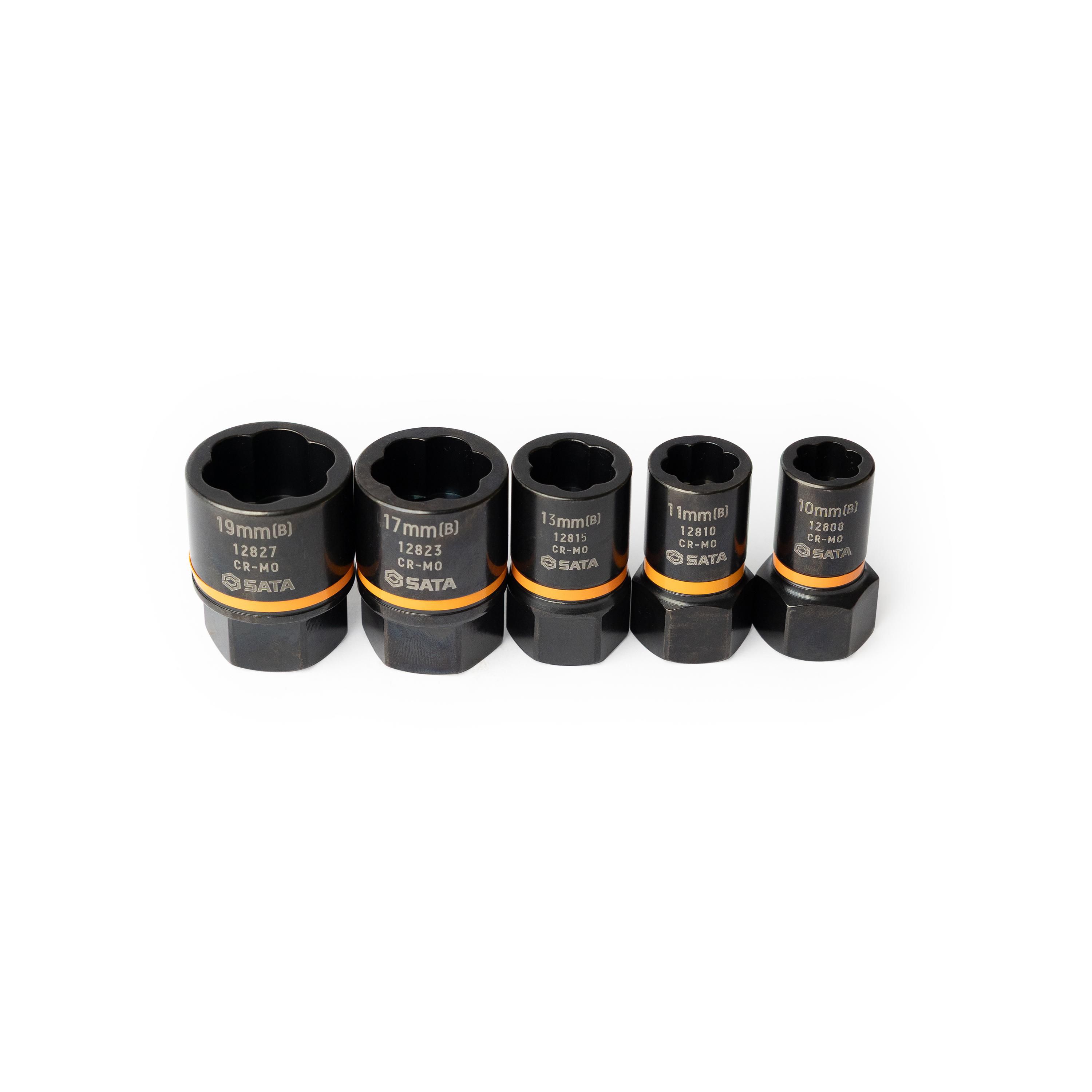 Content 5-3/8" Extraction Sockets 10 mm, 11 mm, 13 mm, 17 mm, 19 mm