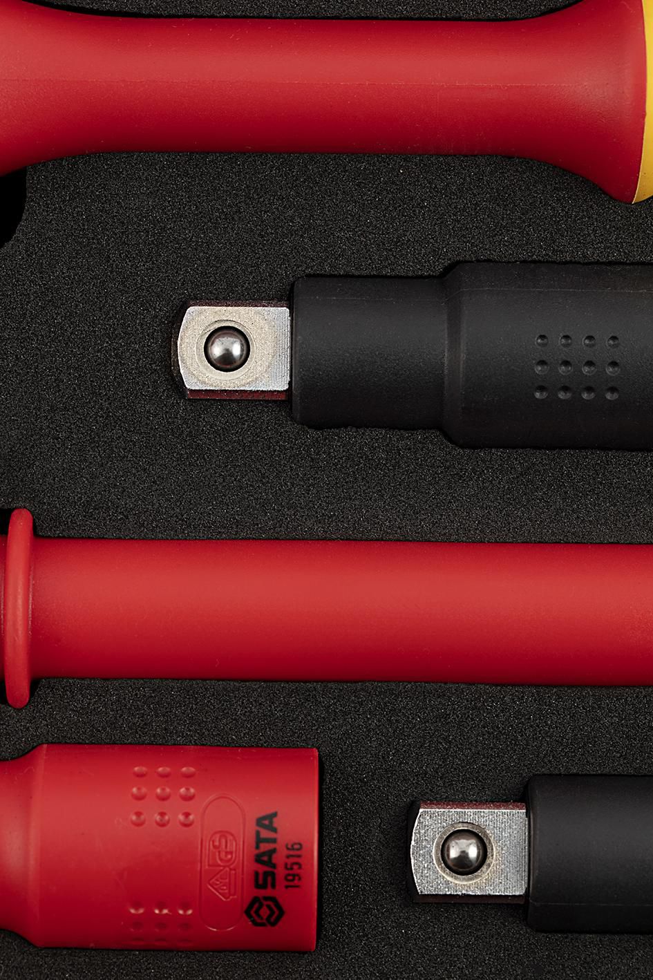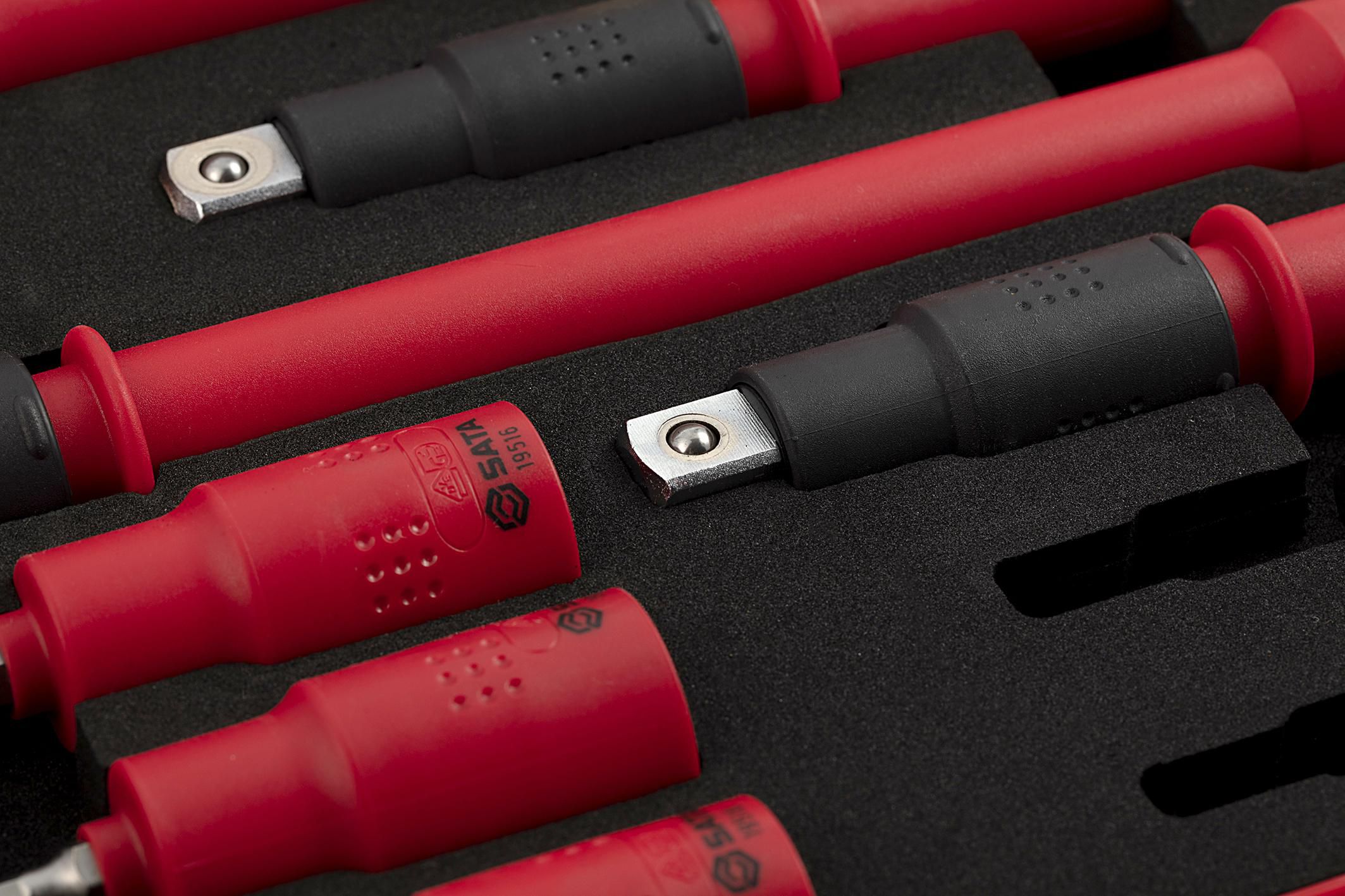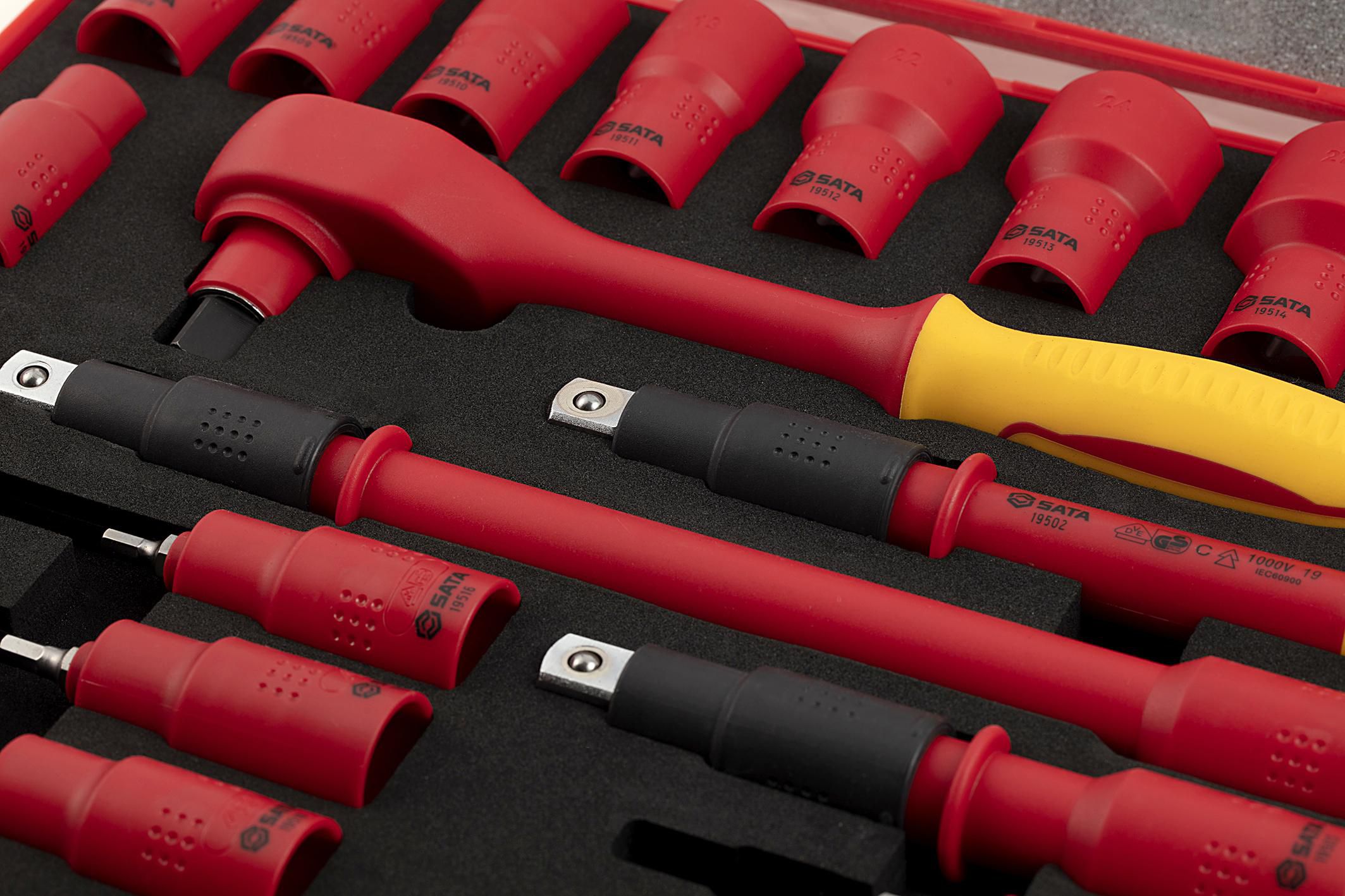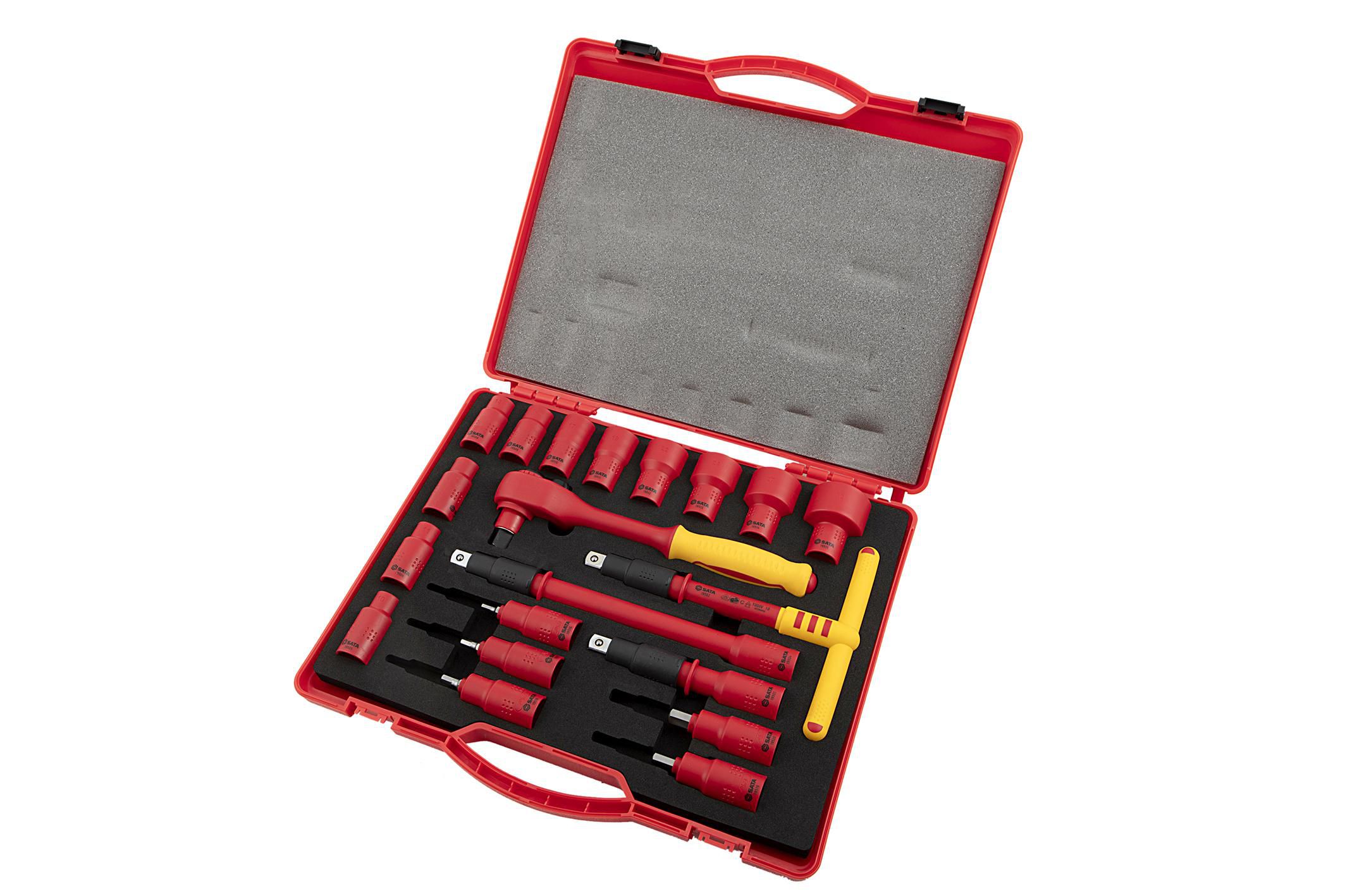| Content | 1- 1/2" Drive Quick Release Ratchet 11- 1/2" Drive 6 pt. Sockets 10, 11, 12 ,13, 14, 17, 19, 22, 24, 27, 32 mm 5 - 1/2" Drive Bit Sockets Hex 4, 5, 6, 8, 10 mm 2- 1/2" Drive Wobble Extension Bars 5", 10" 1- 1/2" Drive T-Handle 8" | ||