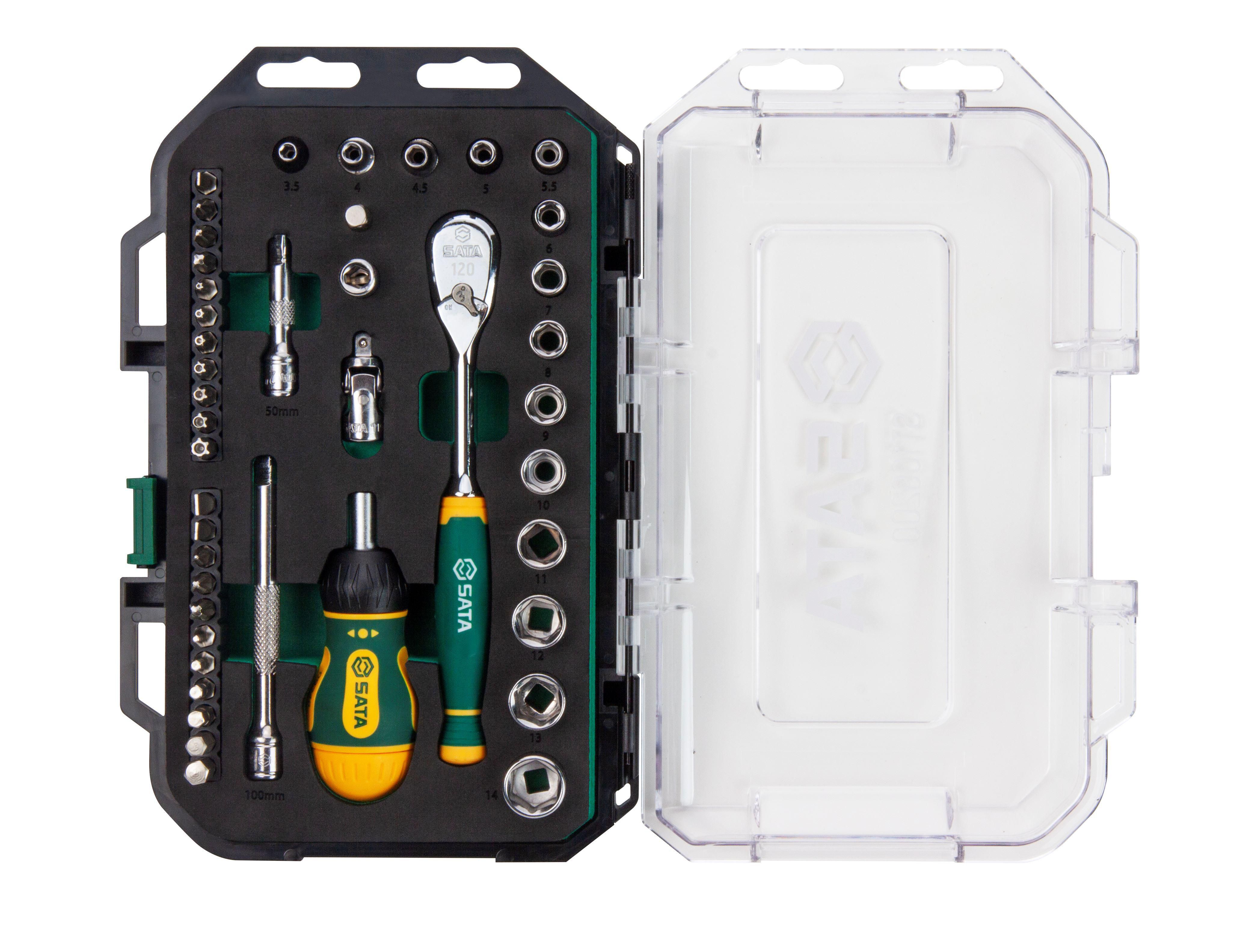 7-Stubby Ratcheting Screwdriver Set incl. 6x 1/4” Shank 25L Bits (Phillips #1, #2, #3, Slotted 4, 5, 6 mm)