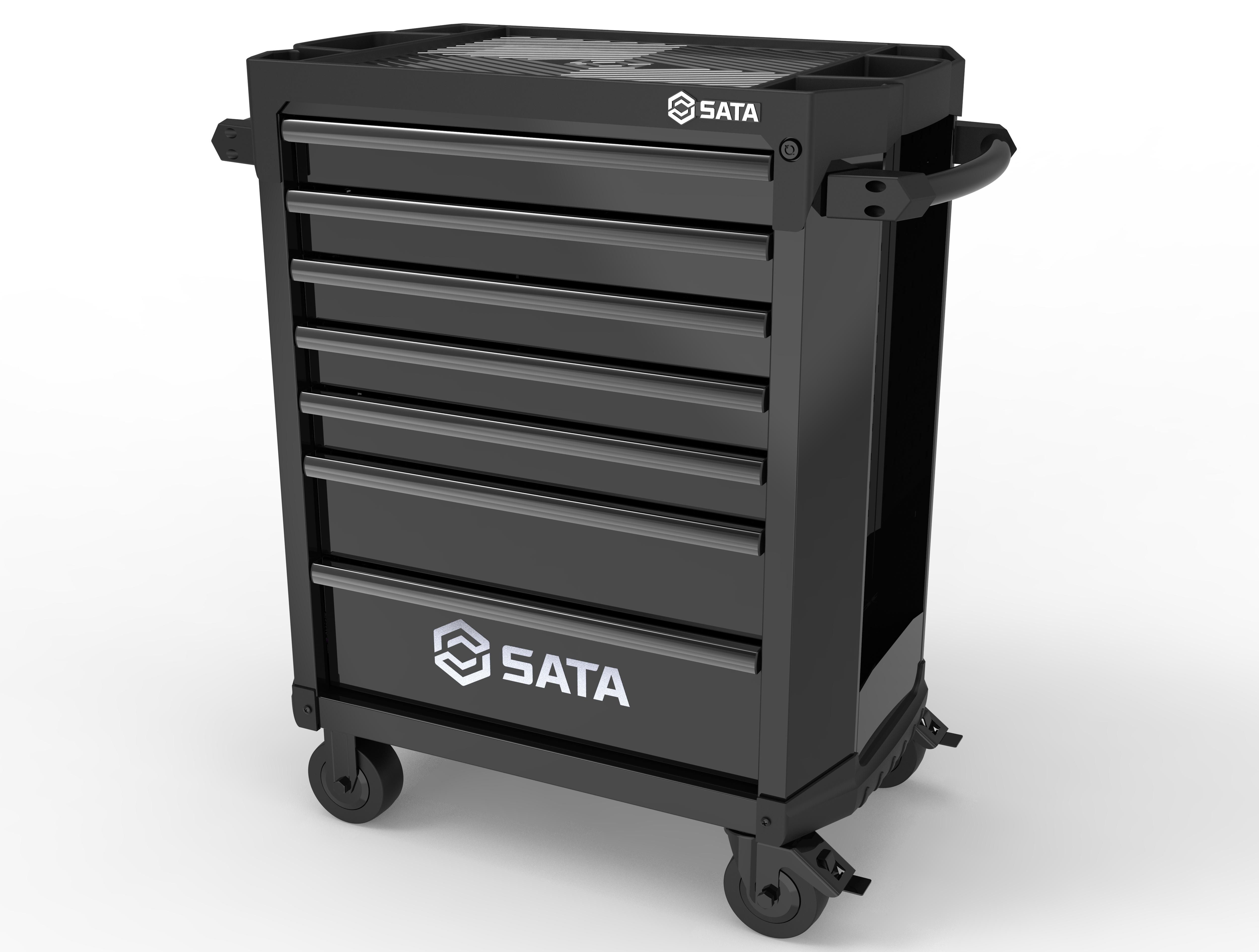 Drawers with 45 mm self-closing ball bearing slides provide excellent stability and prevent drawers from opening while the cart is in motion