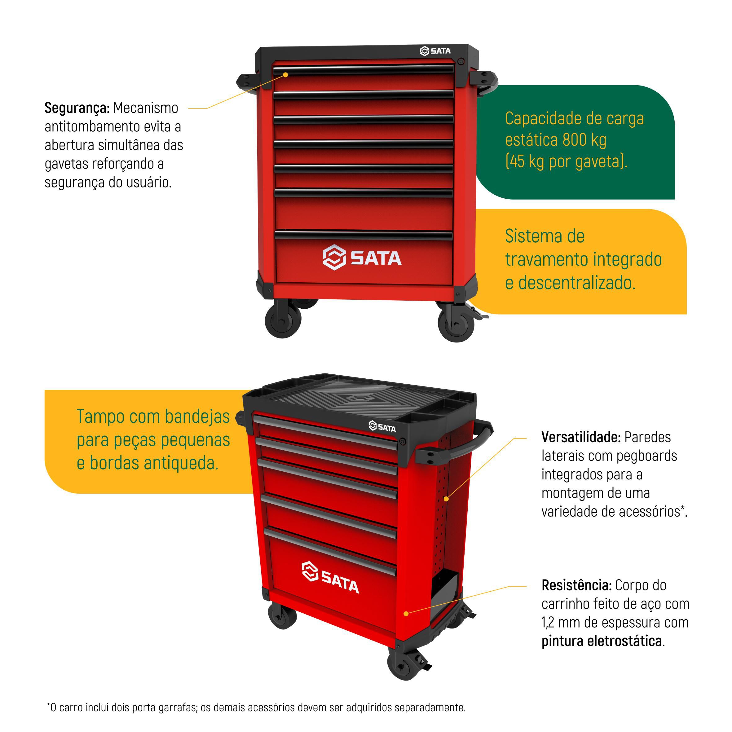 Drawers with 45 mm self-closing ball bearing slides provide excellent stability and prevent drawers from opening while the cart is in motion